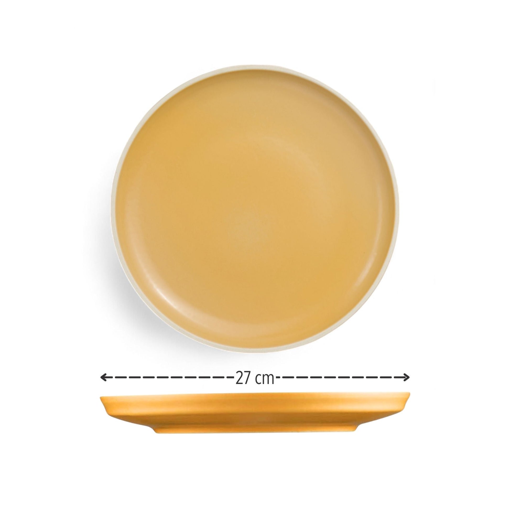 Bascuda Porcelain Dinner Plate, Sanday Series, Yellow in Warm matte mustard-yellow with a smooth, contemporary finish.. 27cm Diameter.