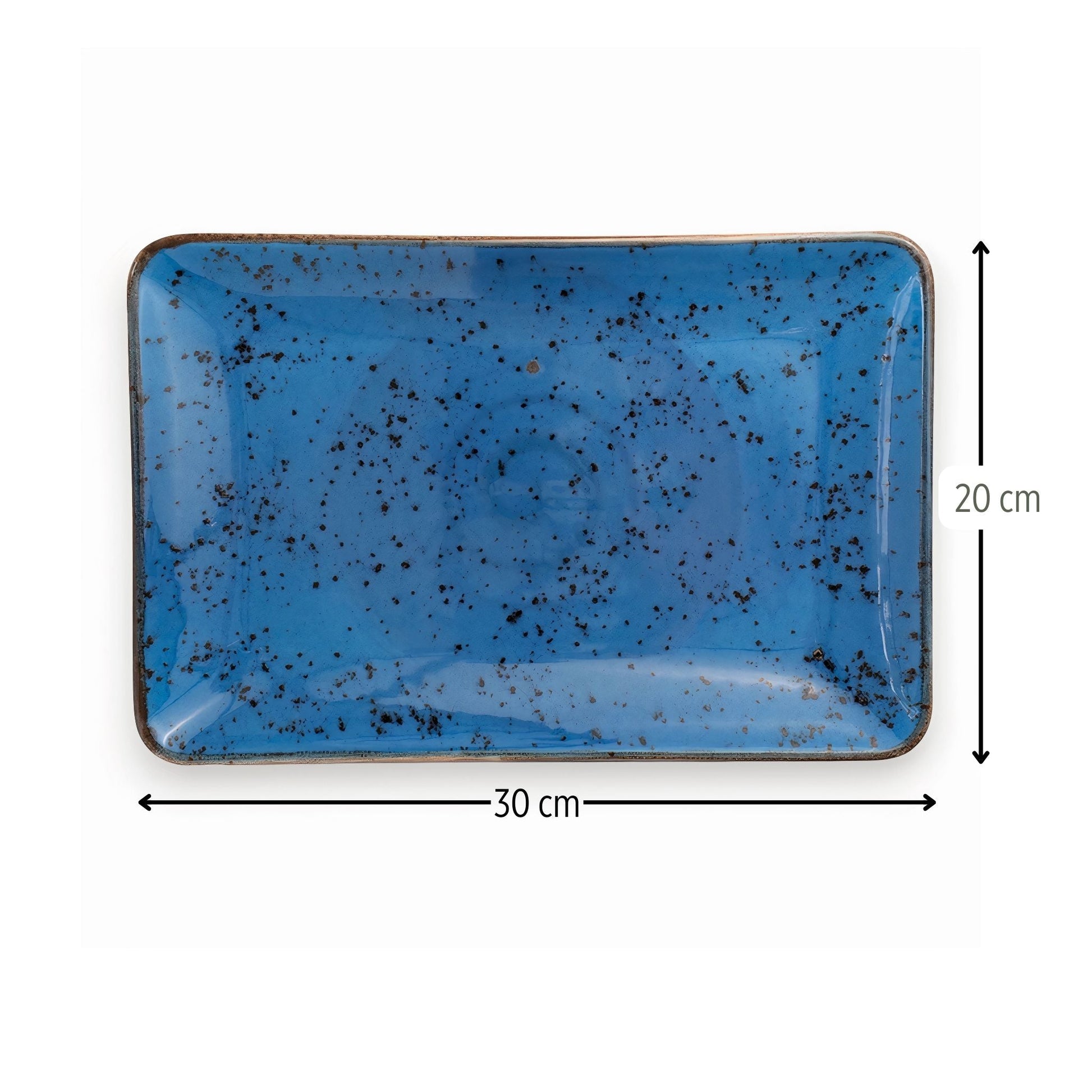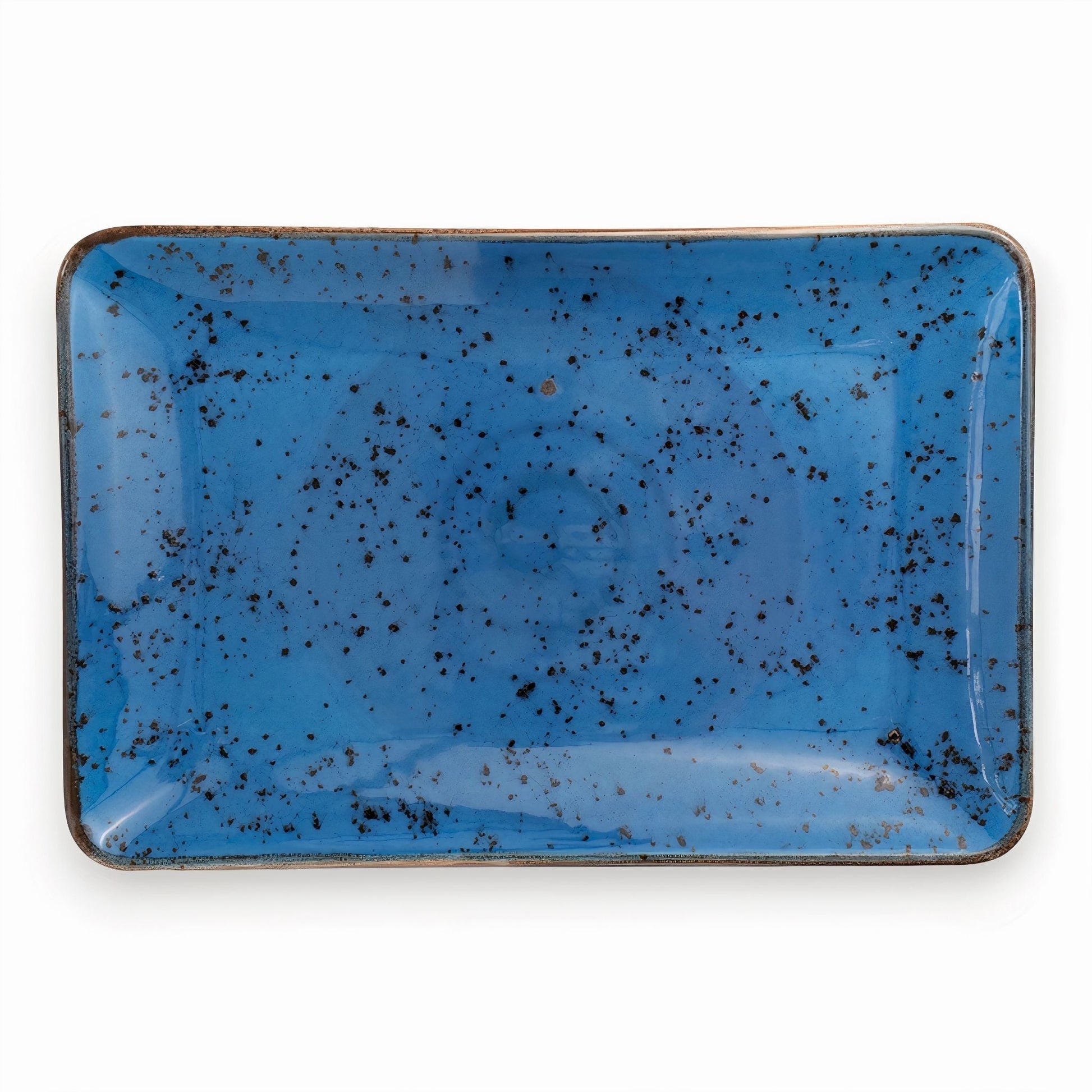 Bascuda Porcelain Serving Plate, Fairlie Series, Blue in Glossy cobalt blue glaze, accented with dark reactive speckles and a rustic brown rim.. 30x20cm.