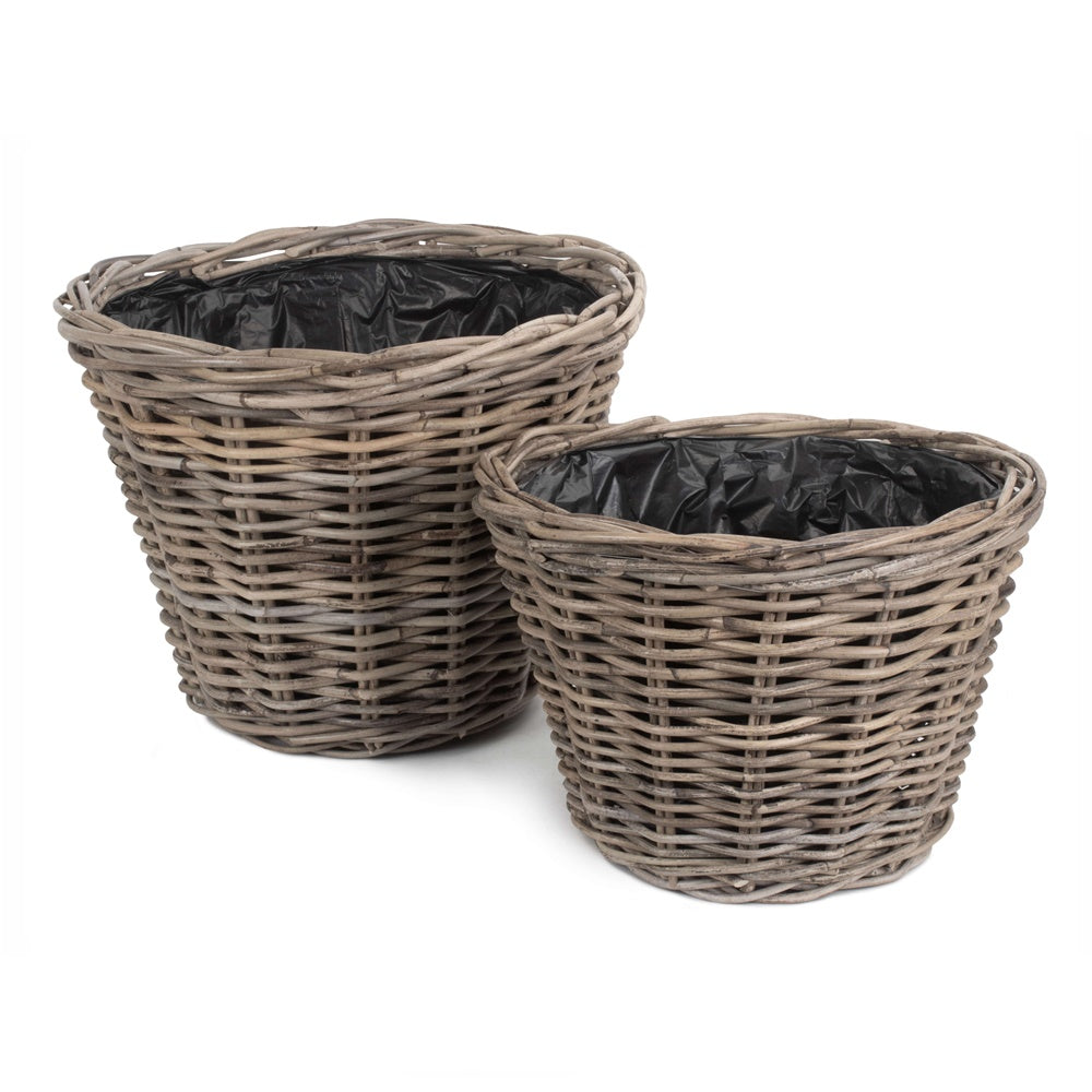 Add a touch of elegance to your home or garden with our Tapered Rattan Round Planter with Plastic Lining.